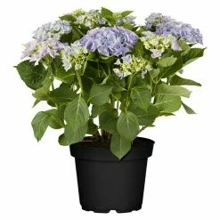 Hortensien (Hydrangea macrophylla) verzaubern ihren Betrachter mit außergewöhnlichen Farbspielen ihrer zierlichen Blütenkronen. Die zarten, blauen Einzelblüten stehen zu gattungstypischen Infloreszenzen zusammen und vollziehen im Verlauf ihrer Blütezeit einen spektakulären Farbwechsel, bevor sie sich in leuchtenden Herbstfarben darbieten. Die Hortensie benötigt einen humusreichen, leicht sauren Boden und bevorzugt einen halbschattigen Standort. Nach Möglichkeit sollte sie nicht zu nah an einen Baum gepflanzt werden, da Baumwurzeln dominant sind und der Hortensie Nahrung und Wasser rauben können.