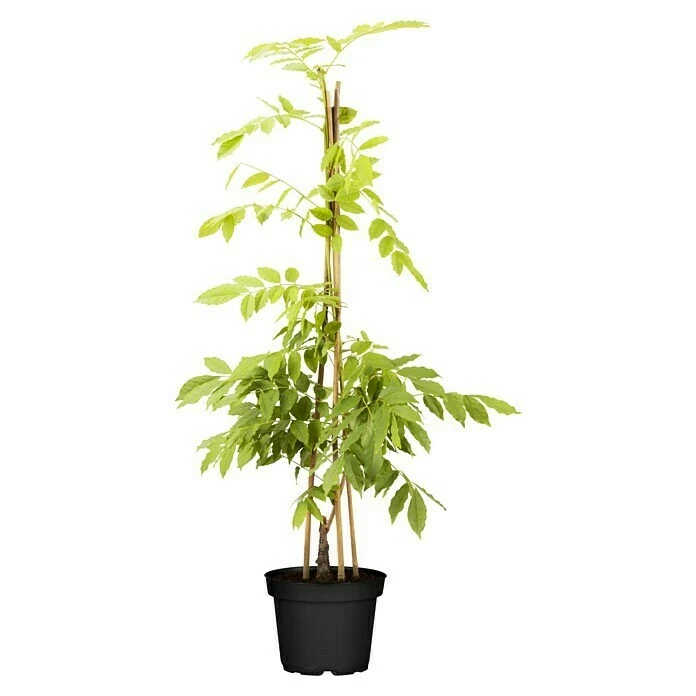 Der Wuchs gestaltet sich rankend, sodass Wisteria sinensis Größen von bis zu 15 m Höhe und 10 m Breite erreichen kann. Ideal für ein gesundes Wachstum ist ein sonniger bis halbschattiger Standort mit durchlässigem, lockerem und nährstoffreichem Boden.