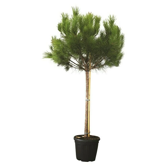 Die Pinie trägt ein immergrünes Kleid aus dunkelgrünen Nadeln. Der Wuchs von Pinus pinea gestaltet sich als Schirm, daher toll als Schattenspender für Zuhause geeignet. Ideal für ein gesundes Wachstum ist ein sonniger Standort mit durchlässigem, lockerem und sandigem Boden.