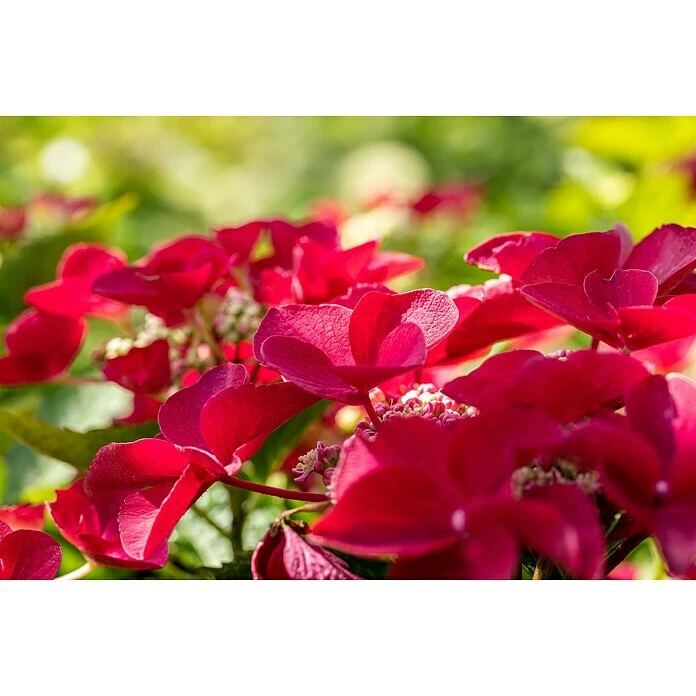 Tellerhortensien sind in ihrem Erscheinungsbild den Bauernhortensien sehr ähnlich, was vor allem von der gleichen Blütenform her stammt. Doch ist die Tellerhortensie filigraner und zierlicher, in ihren Blüten auch kleiner als die Bauernhortensie. Die Blüte wirkt außergewöhnlich und besonders und ist bei manchen Sorten sogar mehrfarbig. Um die Hauptblüte herum sind bei einigen Arten Scheinblütchen angeordnet, die meist hellere Farben als die Hauptblüte zeigen. Auch bei diesen Hortensien variiert die Farbintensität je nach Standort und pH-Wert im Boden. Tellerhortensien lieben sonnige bis halbschattige Pflanzstellen und regelmäßige Wassergaben. Mit Trockenheit kommen sie nur bedingt zurecht. Nährstoffreiche, durchlässige und leicht saure Böden begünstigen eine wunderschöne Blüte, die ab Juni den Strauch ziert.